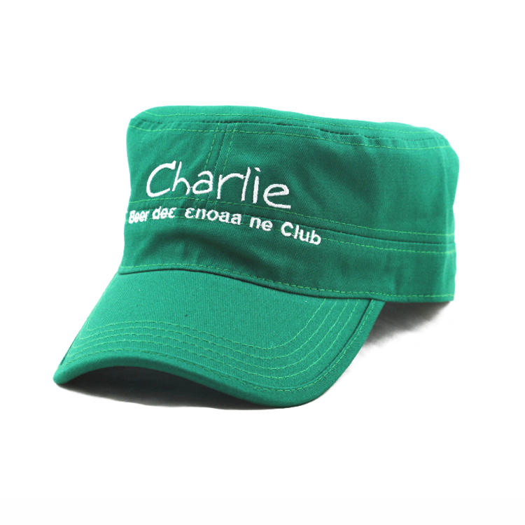 夏季戶外純棉刺繡平頂軍帽定制